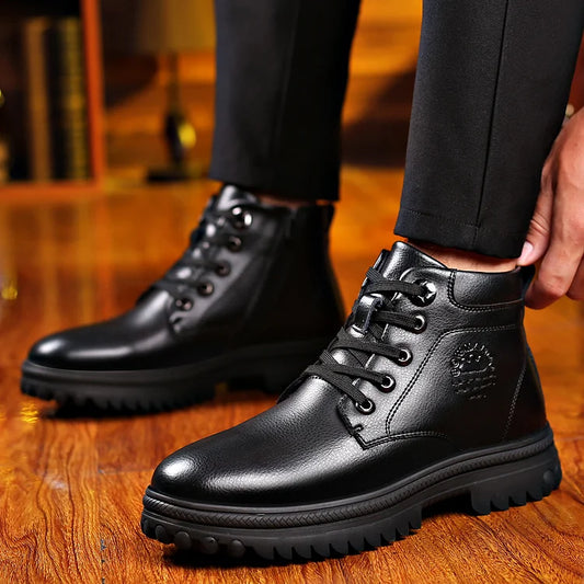 Men's Waterproof Leather Warm Outdoor Hiking Boots Work Shoes Winter Snow Shoes