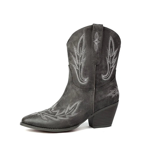 Women's Fashion Retro Flower Chunky Heel Martin Boots